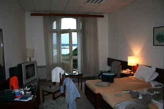 During my travels I take pictures of the hotel rooms in which I have slept. I’ll start posting some of them. The accompanying picture is of one of them, in Pula, Croatia, last spring–The Hotel Riviera.